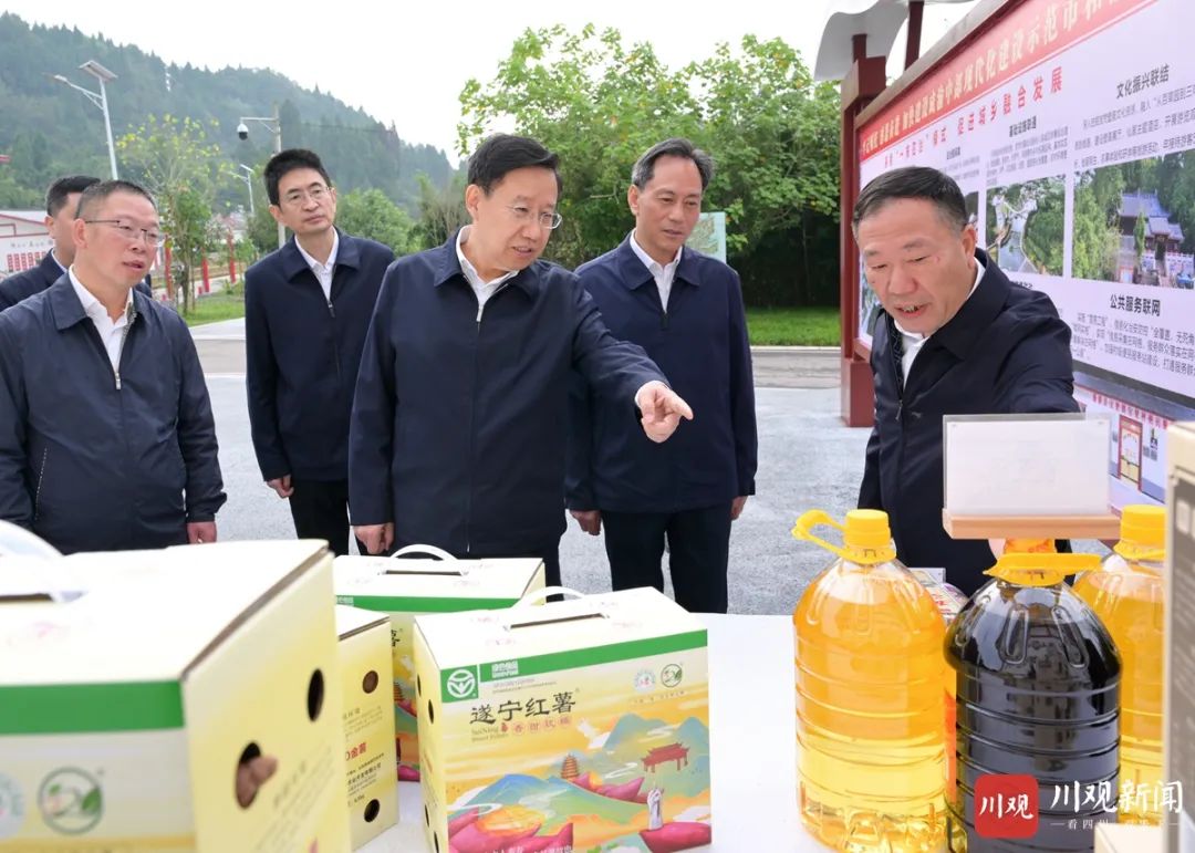 11月3日,省委书记王晓晖到蓬溪县宝梵镇宝梵村调研,观看农特产品展示,了解产品生产销售、品牌打造、市场推广等情况。