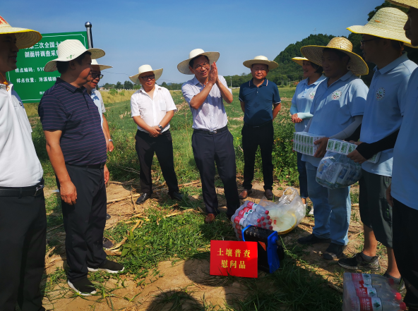 7月19日,省三普办专家组组长王昌全教授带领省包片专家组组长刘定辉,到我市射洪调研指导第三次全国土壤普查工作,在遂宁市人民政府副市长雷刚、遂宁市人民政府副秘书长刘旭、射洪市人民政府副市长王家伦、遂宁市农业农村副调研员文春生等领导的陪同下,来到洋溪镇杨桃溪村采样点位现场观摩了土壤剖面的挖掘,分层等情况。王昌全教授就土壤普查的意义、土壤的形成、土壤的分类系统进行了简单的介绍,他也对遂宁和射洪土壤普查试点工作给予了高度评价,在领导的高度重视下,射洪外业调查启动、技术力量整合、外业采样总量等方面均走在了全省前列,他有信心射洪能够高质量完成土壤普查的“后半篇”工作。