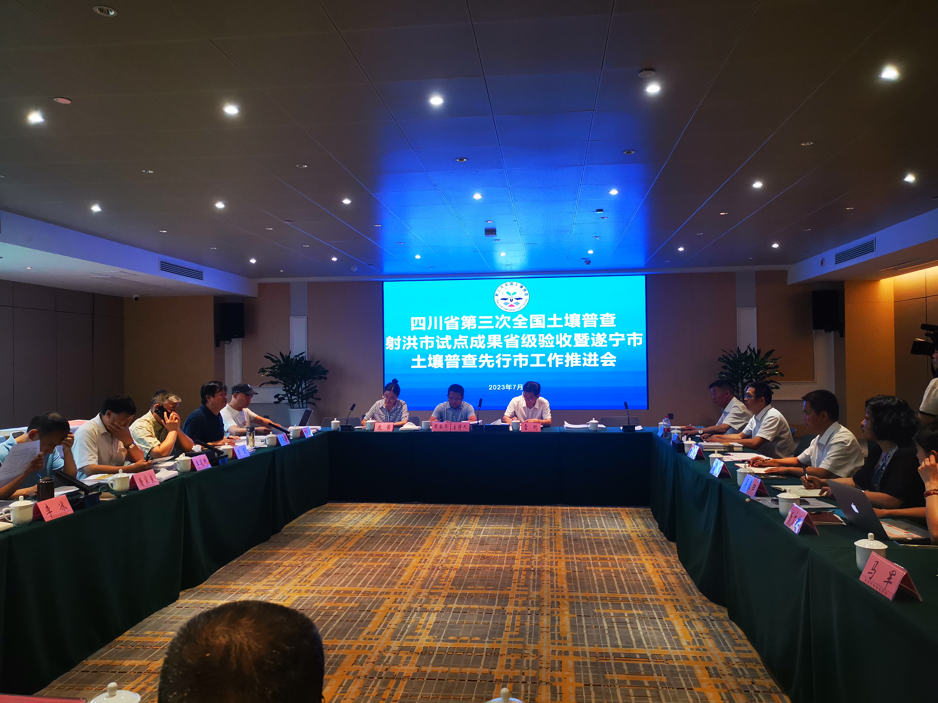 为全面总结第三次全国土壤普查试点经验,形成高质量普查成果,7月13-14日,第三次全国土壤普查射洪试点成果省级验收暨遂宁市土壤普查先行市工作推进会在射洪市召开。省农业农村厅二级巡视员、省土壤普查办副主任周南华、遂宁市委常委、副市长、市委政法委书记、市土壤普查领导小组组长雷刚、射洪市副市长陈丽宇、省市专家联合验收组出席会议。市三普办人员以及各县(区)三普办、专业技术人员参加了会议。