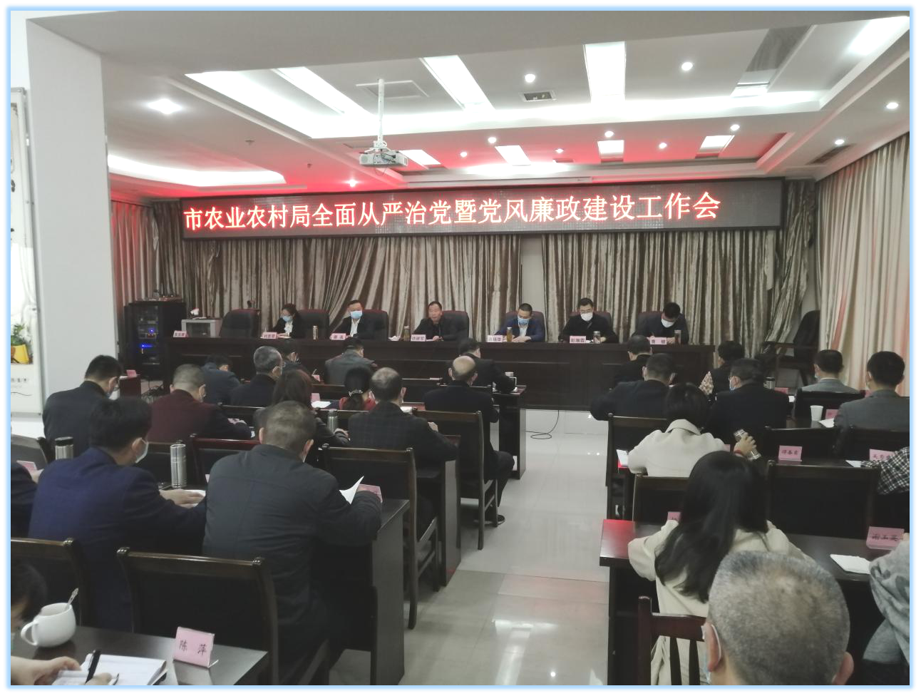 4月10日,市农业农村局组织召开全面从严治党暨党风廉政建设工作会,全体干部职工参加大会。市委农办主任、市农业农村局党组书记、局长徐建军,驻市农业农村局纪检监察组长蒋佰华出席会议并作了讲话,机关党委书记彭瀚霖主持会议。