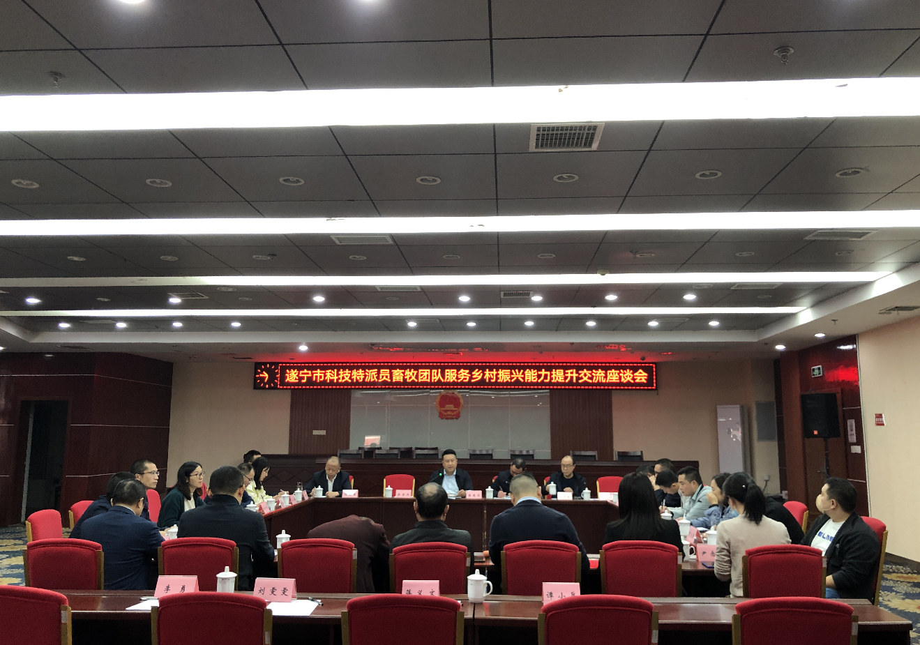 11月1日,遂宁市科技特派员畜牧团队服务乡村振兴能力提升交流座谈会在川渝毗邻地区人力资源服务产业园召开。市科技局副局长、遂宁国家农业科技园区党工委书记唐昆仑到会致辞,市农业农村局总畜牧师、畜牧团团长唐建宏主持会议,全市30余名畜牧团科技特派员参加会议。