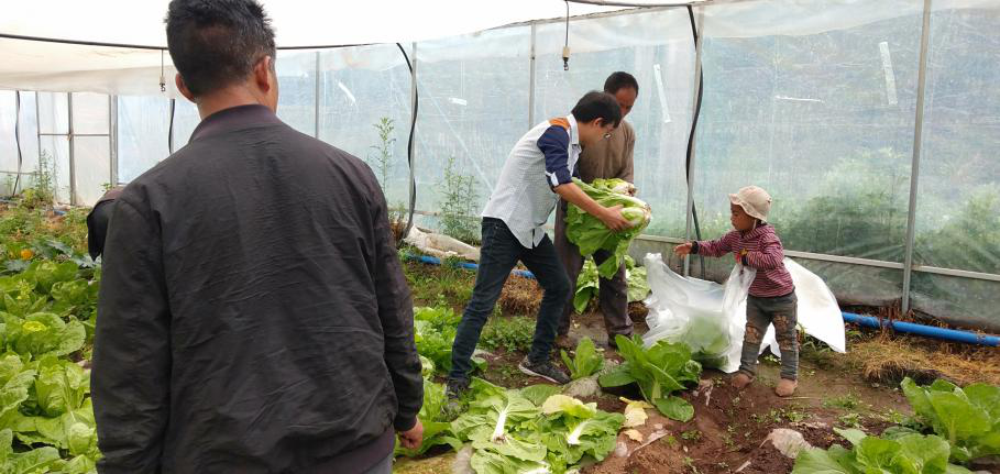 同时,为解决蔬菜销售问题,陈杰和马洪乡拉都吉村驻村工作队"两委"充分发挥微信公众号、微信群等平台作用,发布销售信息为高山大棚蔬菜"打广告"。此次收获的1000斤大白菜全部由本地学校采购,预计收入千元以上。(撰稿:陈杰 核稿:钟清宇)