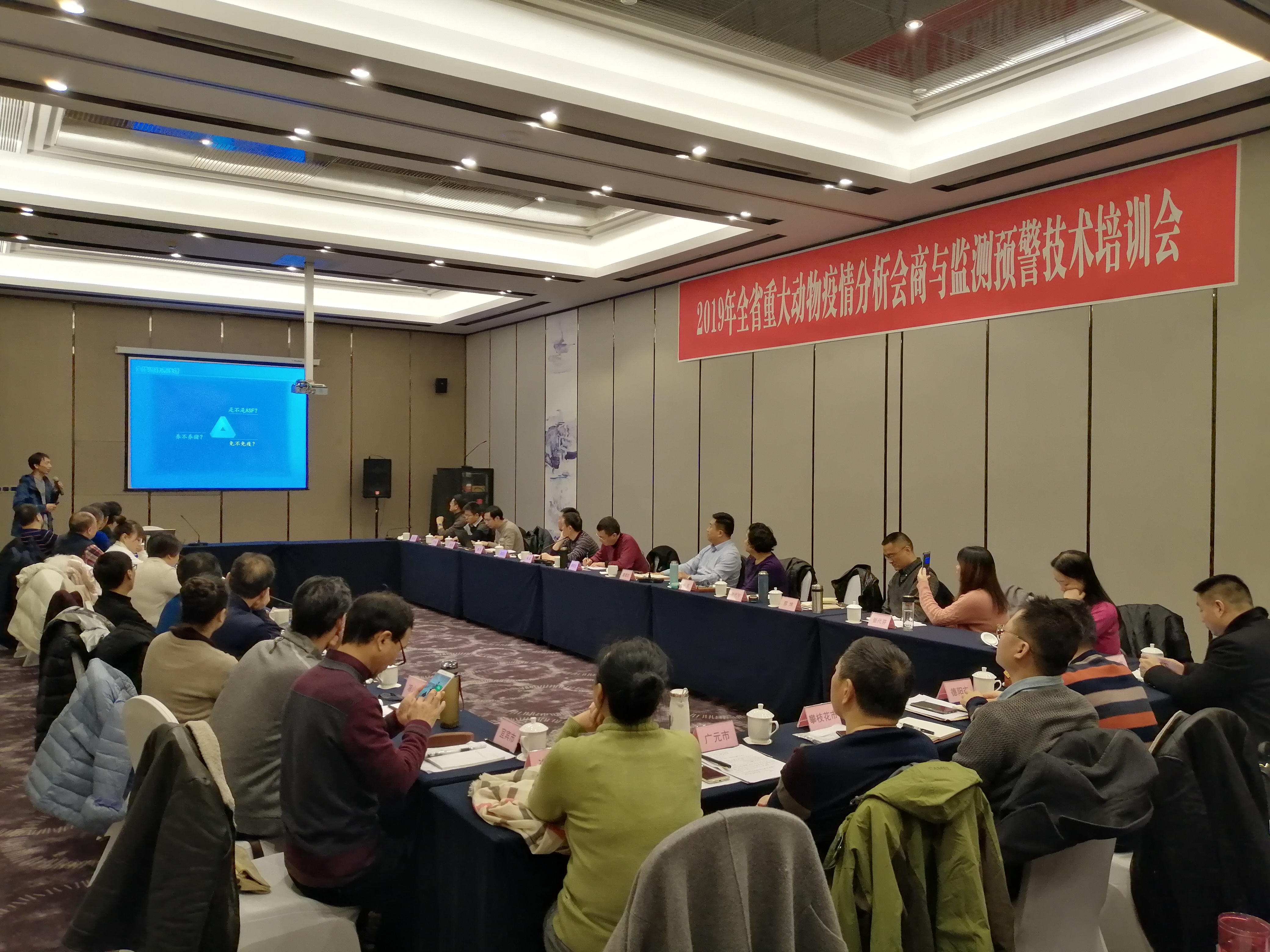 为科学预警预报非洲猪瘟等主要动物疫病风险,保障生猪等畜禽产品稳产保供,2019年12月12日,省动物疫病预防控制中心在遂宁召开了2019年全省重大动物疫情分析会商会与监测预警技术培训会。四川大学、四川农业大学、四川省畜科院等院校专家和各市(州)动物疫病预防控制中心主要负责人等70余人参加。省动物疫病预防控制中心主任周明忠,遂宁市农业农村局党组成员、总畜牧师唐建宏出席会议。