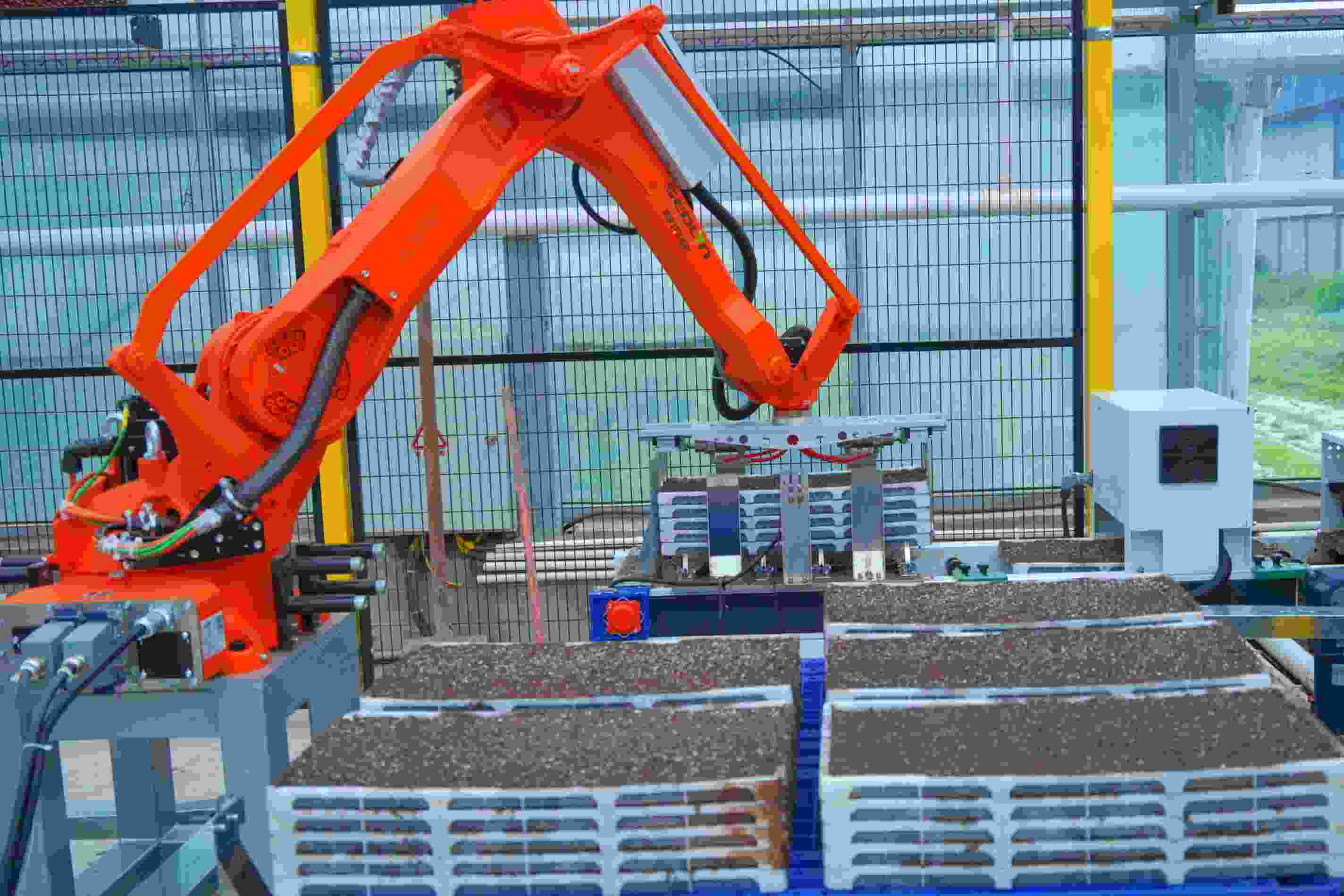 育秧生产线上机器手臂正在码垛。安居区委宣传部供图