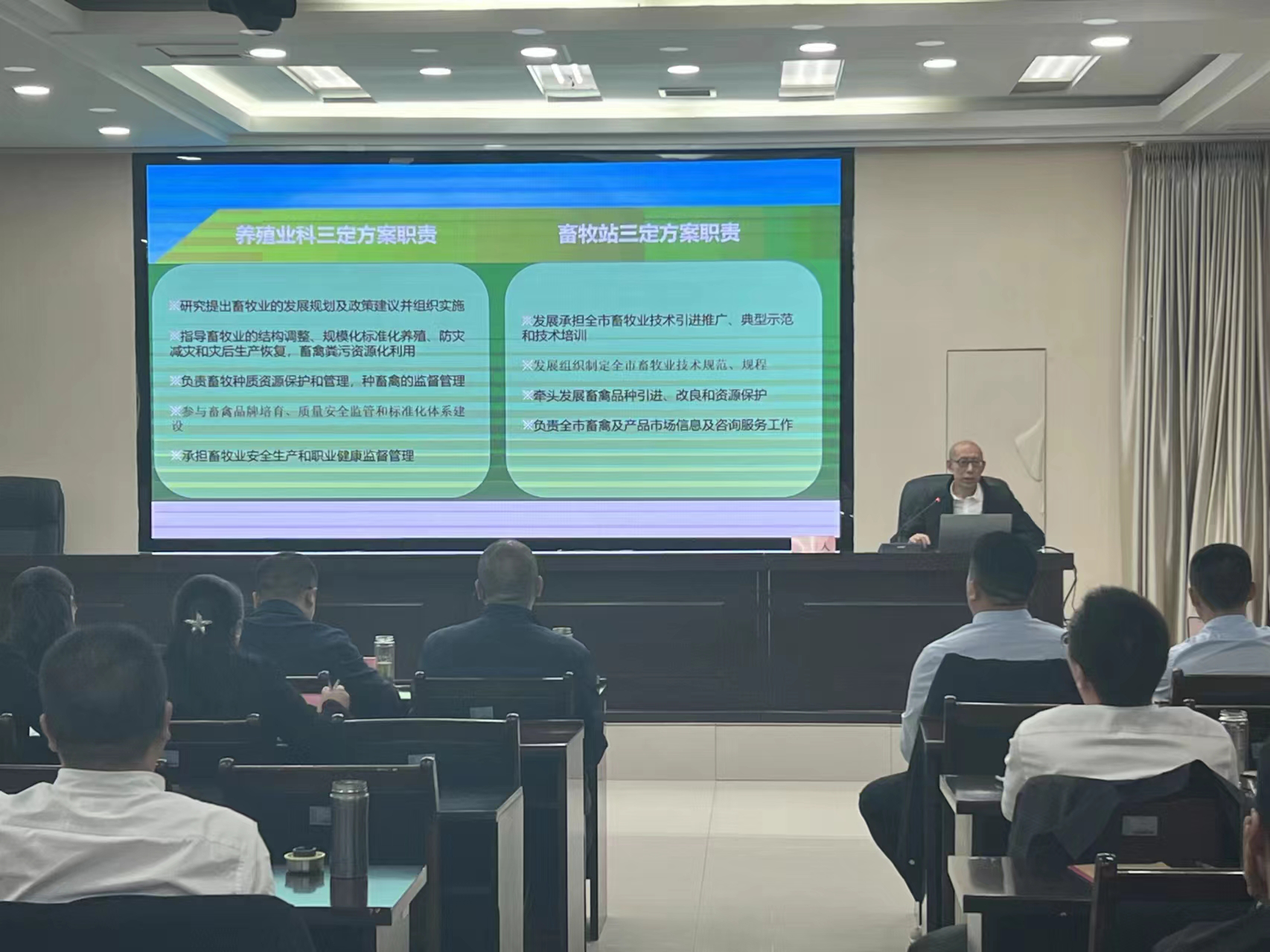 养殖业科科长陈中国做“强力推进全市畜牧产业高质量发展”业务讲授