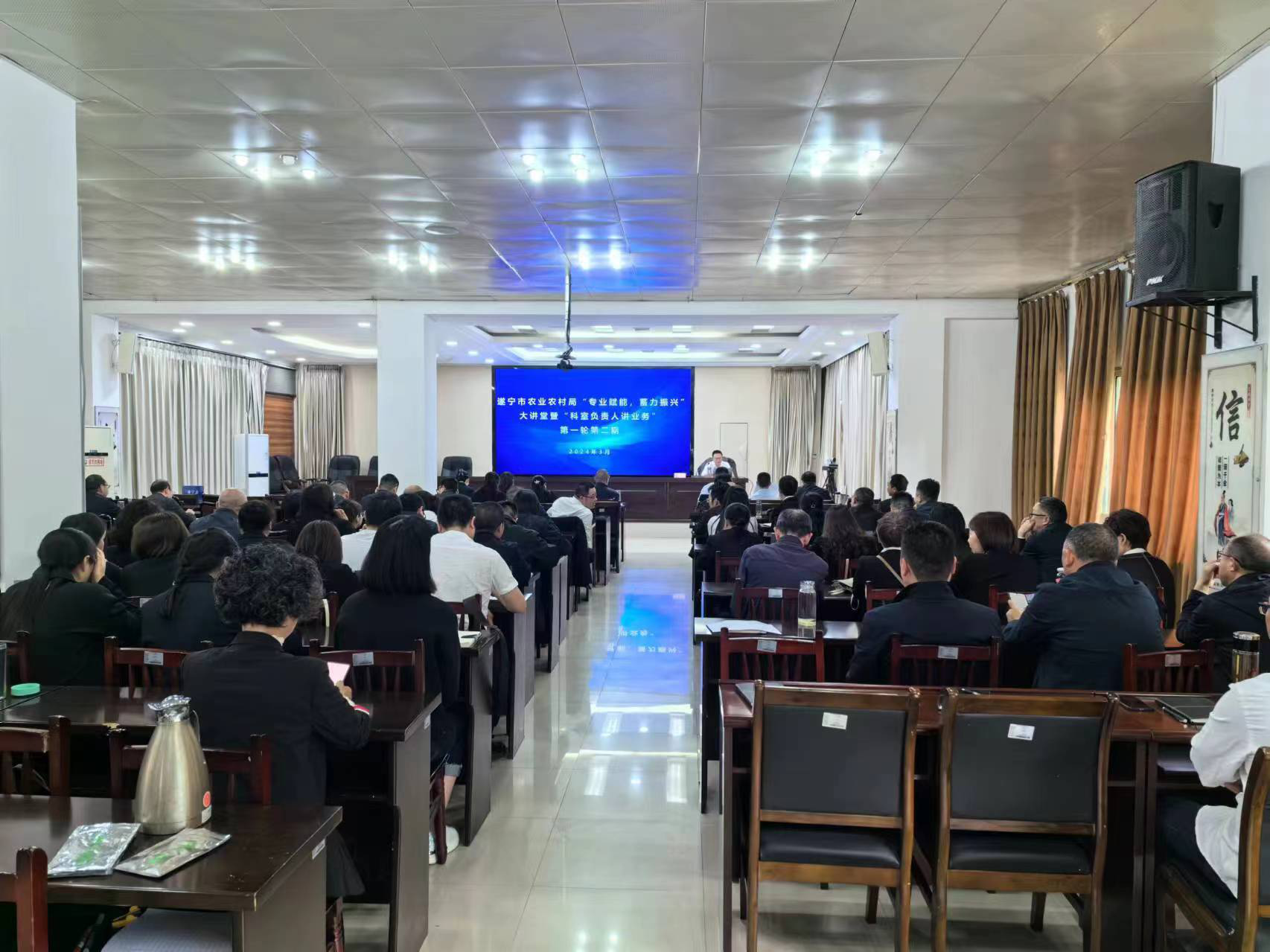 3月29日下午,遂宁市农业农村局举办第一轮第二期“专业赋能,蓄力振兴”大讲堂暨“科室负责人讲业务”活动,由局农业园区科科长赵明、养殖业科科长陈中国分别做“农业园区科业务汇报”、“强力推进全市畜牧产业高质量发展”业务讲授。讲授主题突出,既展示了科室重难点业务,又分享了工作成绩和经验,也分析了当前存在的困难和解决问题的办法思路。课后,听课领导做现场点评,并进行现场打分。局党组书记、局长皮国平同志勉励干部职工,要借讲堂活动,找出差距,培养思维习惯,播种壮志雄心,时刻保持谦虚态度,相互尊重、相互学习、相互提高,用锐意进取、开拓创新的精气神推动农业农村工作取得新成效。