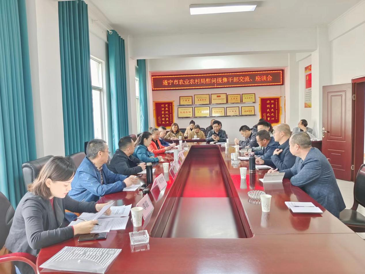 为进一步关心关爱援彝干部,更好激发援彝干部工作热情,2022年5月17日至19日,受遂宁市农业农村局党组书记、局长徐建军委托,农产品质量安全中心主任钟清宇率队赴越西慰问援彝干部,并组织召开座谈交流会。越西县农业农村局副局长吉乃阿衣木和相关股室负责人参与座谈交流。