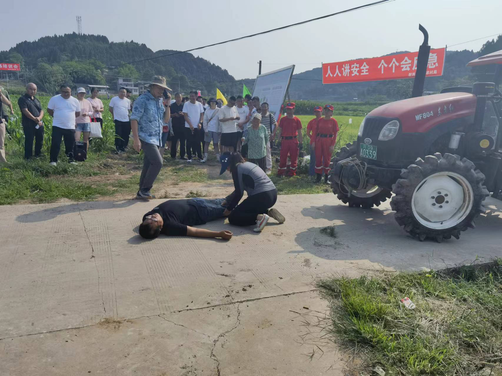 现场模拟了拖拉机发生不明原因起火如何灭火、拖拉机在转移过程中撞伤路边行人如何处置的情况等场景。对农机事故应急处置流程,示范演示了拖拉机、灭火器、植保无人机等安全操作、标准化作业方法等进行了现场讲解。