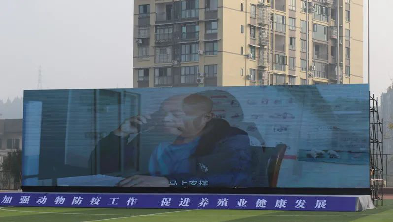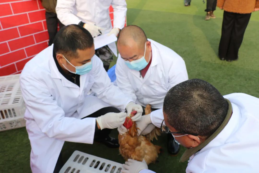“唐站长,我们萝兜堰村佳成蛋鸡场林涛反映出现高致病性禽流感可疑情况,请马上派人到现场查看。”此次演练采取现场与视频相结合的方式进行。视频中演绎了疫情报告诊断与先期处置环节,特聘防疫专员在开展动物疫病防控日常巡查工作时接到佳成蛋鸡场反映的高致病性禽流感可疑情况后,立即向上级报告相关情况,上级部门随即组织人员到现场诊断,做好相关防控工作……