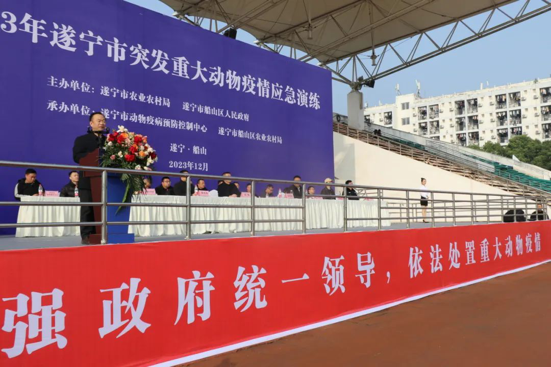 遂宁市农业农村局总畜牧师唐建宏表示,活动达到了检验预案、磨合机制、锻炼队伍、提升能力的预期目标,具有很强的针对性和实用性,各县(市、区)要对标此次演练成果,及时总结、取长补短,深入查找问题和不足,结合本部门的实际,积极构建统一指挥、结构合理、反应灵敏的突发重大动物疫情应急防控体系,完善平战结合机制、大力提升应急处置能力,确保全市不发生区域性重大动物疫情和公共卫生安全事件,为新时代畜牧产业健康发展、全面推进乡村振兴,加快建设农业强市作出新的更大的贡献。