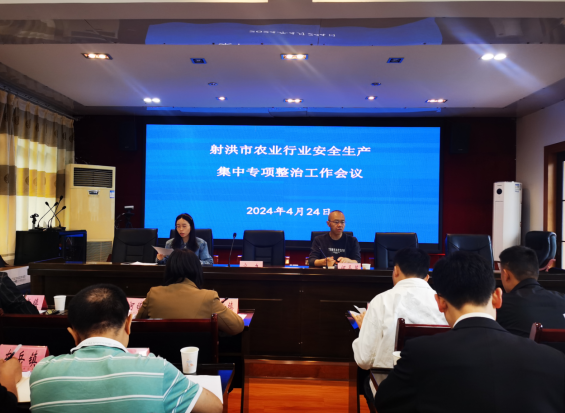 4月24日上午,射洪市农业农村局召开农业行业安全整治工作专题会,农能中心主任、农业行业安全生产分管领导何圣葆主持会议,各镇、街道办事处及局内设股室负责人计40余人参加会议。