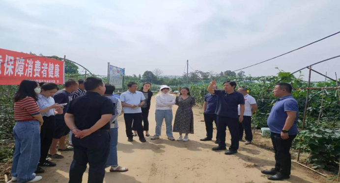 5月13日,农业农村厅农产品质量监管与品牌培育处处长李幼平、省农产品安全中心副主任施波一行到射洪调研我市豇豆农残突出问题攻坚治理工作。市农业农村局副局长刘罡霏、射洪市副市长陈丽宇,市局农安与市场信息科、射洪市农业农村局及沱牌镇相关人员陪同。