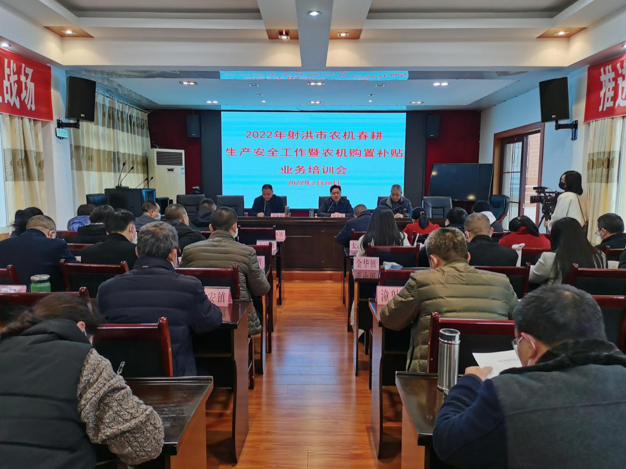 2022年2月28日,射洪市农业农村局召开了“2022年农机春耕生产安全工作暨农机购置补贴业务培训会”,各镇、街道办事处农业服务中心主任、农机干部参加了会议。
