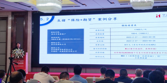 关晓磊以《生猪期货套保运用及订单养殖发展汇报》为题,分享了高金公司三个套保案例,并指出订单合作模式是大势所趋,上下游“强强联合”实现优势互补。
