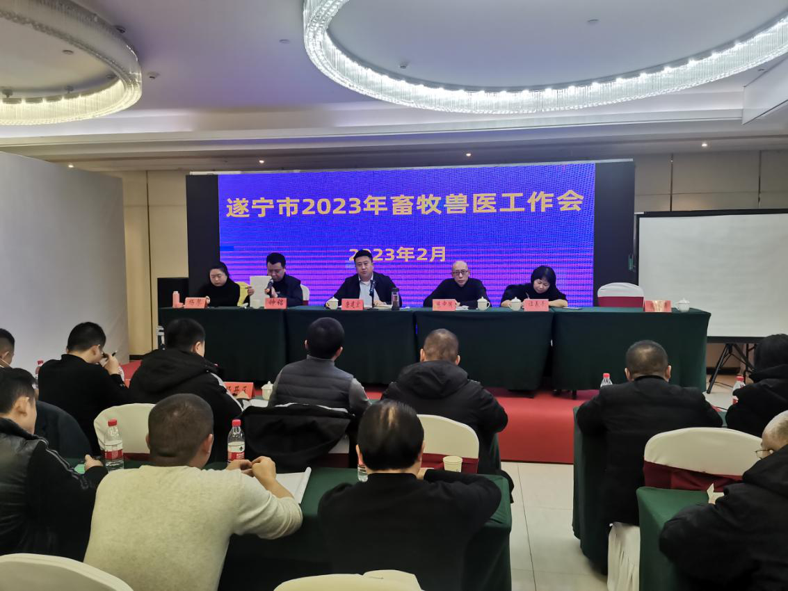 2月16日,2023年全市畜牧兽医工作会在蓬溪县召开。各县(市、区)农业农村局、市直园区农业农村部门分管领导,市、县两级畜牧兽医相关业务部门50余人参加了会议。市农业农村局总畜牧师唐建宏出席会议并讲话。