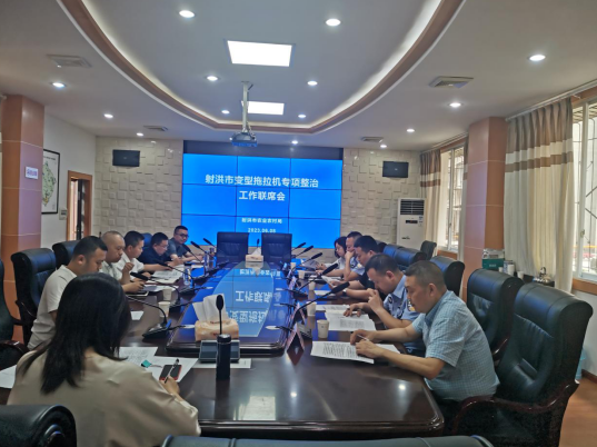 2023年6月8日,射洪市农业农村局组织市道安办、市交警大队、市应急管理局、市行政审批局召开射洪市变型拖拉机专项整治联席会议。会议由农业农村局局长余宁主持,相关单位分管或负责同志,农业农村局农机、行业安全、执法大队分管同志及农机执法中队和农机化股全体人员共17人参会。
