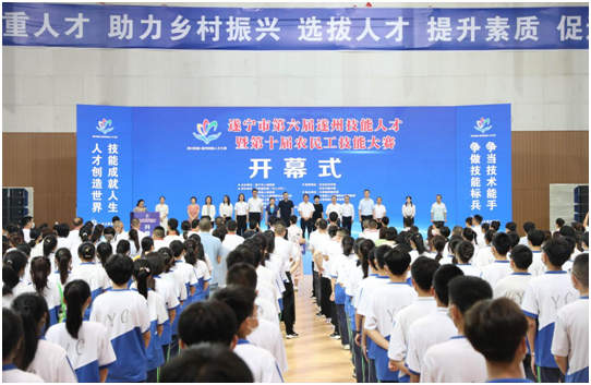 24日上午,大赛开幕式在大英县体育馆举行。省人力资源社会保障厅二级巡视员陈泉、省农民工服务中心主任张凯钇、省职业技能鉴定指导中心主任尹晓、市人大常委会副主任成斌、市政协副主席周华以及市人才办、市人力资源社会保障局、市教育体育局、市总工会、团市委、市妇联、市农业农村局、市乡村振兴局、市农民工服务中心以及大英县相关负责同志出席开幕式。