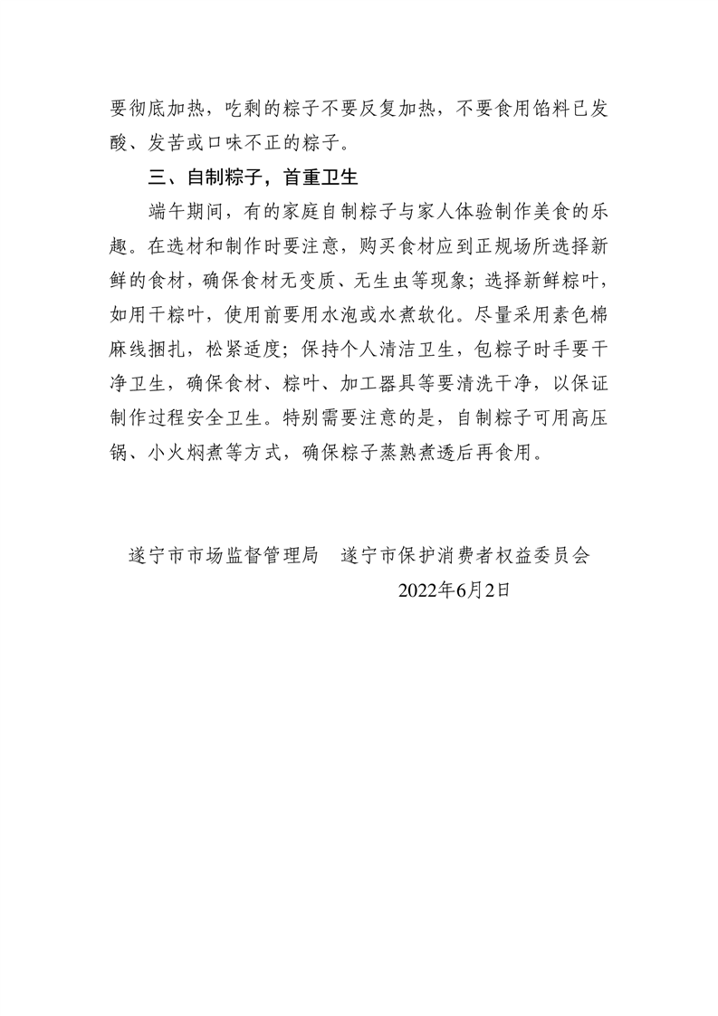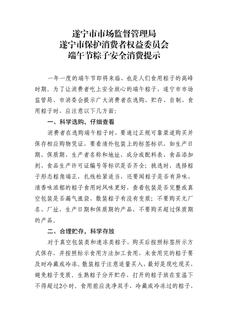 遂宁市市场监督管理局 遂宁市保护消费者权益委员会 端午节粽子安全消费提示