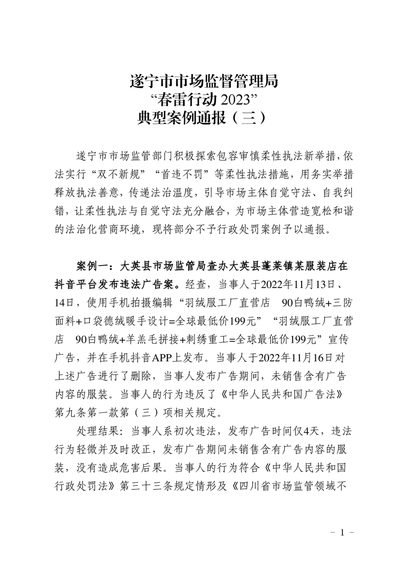 遂宁市市场监督管理局“春雷行动2023”典型案例通报(三)