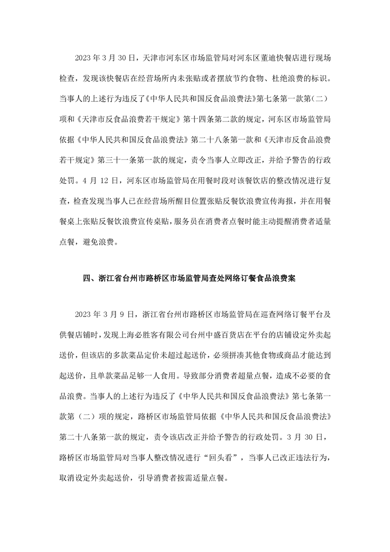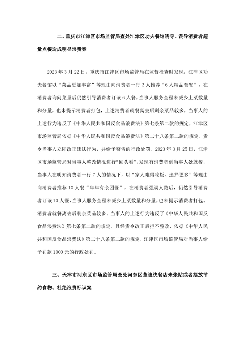 市场监管部门公布第四批制止食品浪费行政处罚典型案例