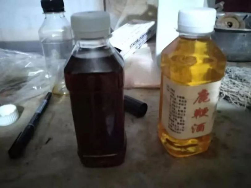 执法人员在该窝点现场发现各类自制“虎鞭酒”等“药酒”12坛(1200余斤),制作“药酒”用原料草乌等中药材40余包(约50斤),制作“药酒”用过滤器1台、打粉机1台、商品标签845张、包装瓶320个等若干物品。