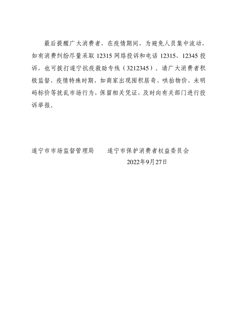 遂宁市市场监督管理局 遂宁市保护消费者权益委员会 疫情期间消费提示