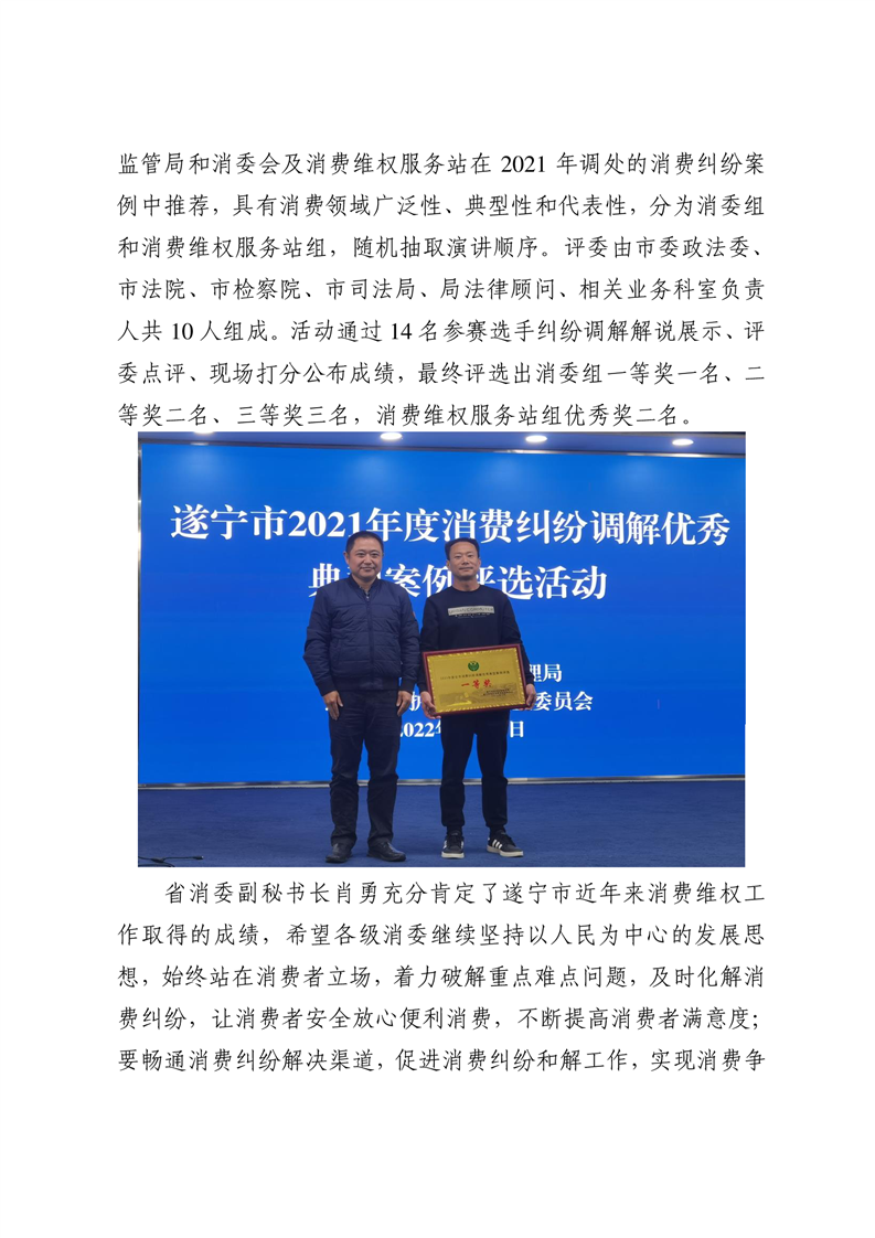 遂宁市举办2021年度消费纠纷调解优秀典型案例评选活动
