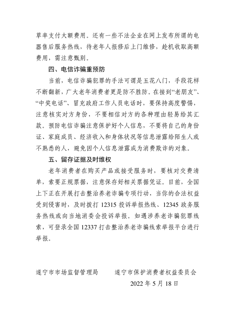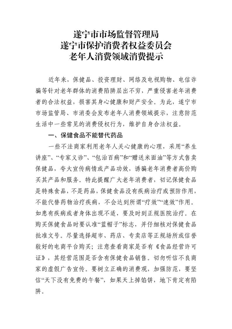 遂宁市市场监督管理局 遂宁市保护消费者权益委员会 老年人消费领域消费提示