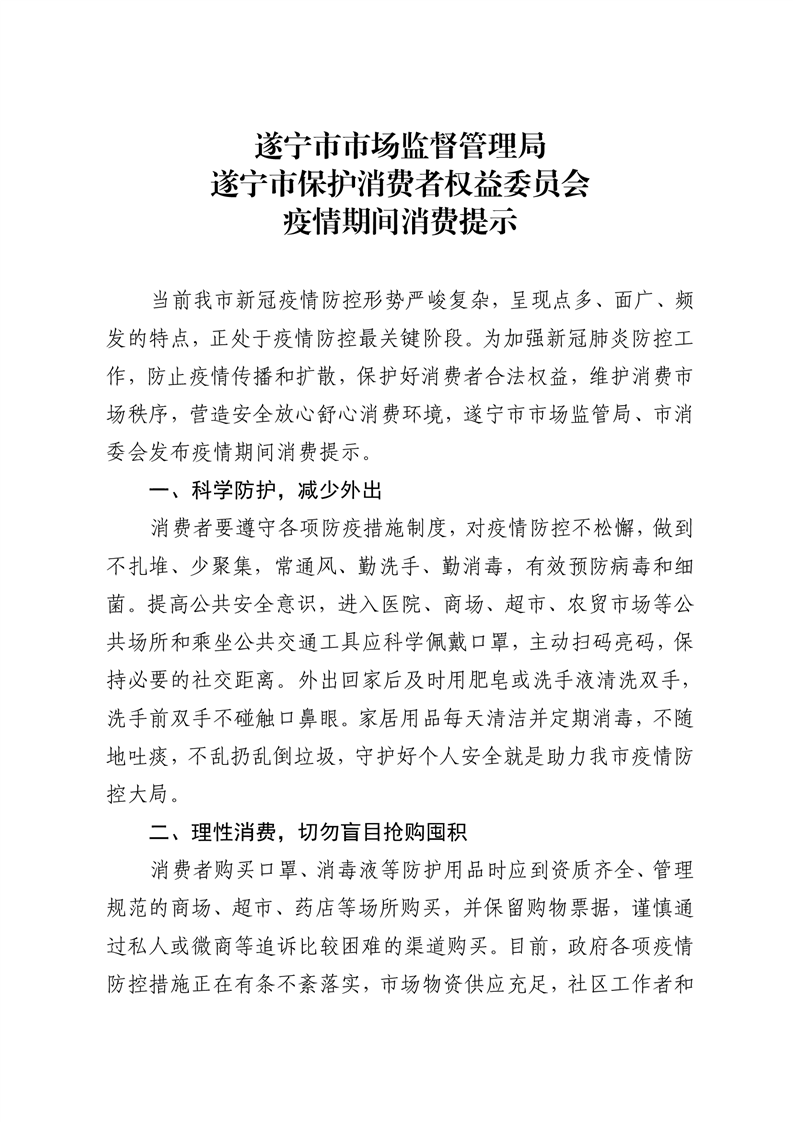 遂宁市市场监督管理局遂宁市保护消费者权益委员会疫情期间消费提示