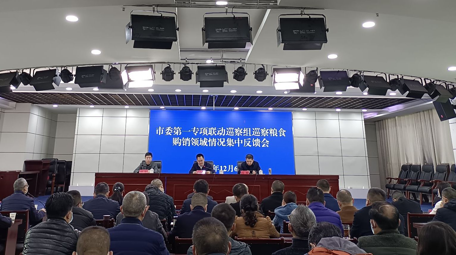 根据市委和市委巡察工作领导小组安排,2021年12月6日,市委第一专项联动巡察组巡察粮食购销领域情况集中反馈会召开。市委常委、市政府常务副市长杜海洋出席会议并讲话。会上,市委第一专项联动巡察组组长胡忠对市发展改革委党组、市财政局党组、市国资委党委、市市场监管局党组、市国丰粮油有限公司的主要问题进行了集中反馈,5个单位负责人分别作表态发言。市委巡察工作领导小组成员、市纪委副书记、市监委副主任韩麟主持会议。