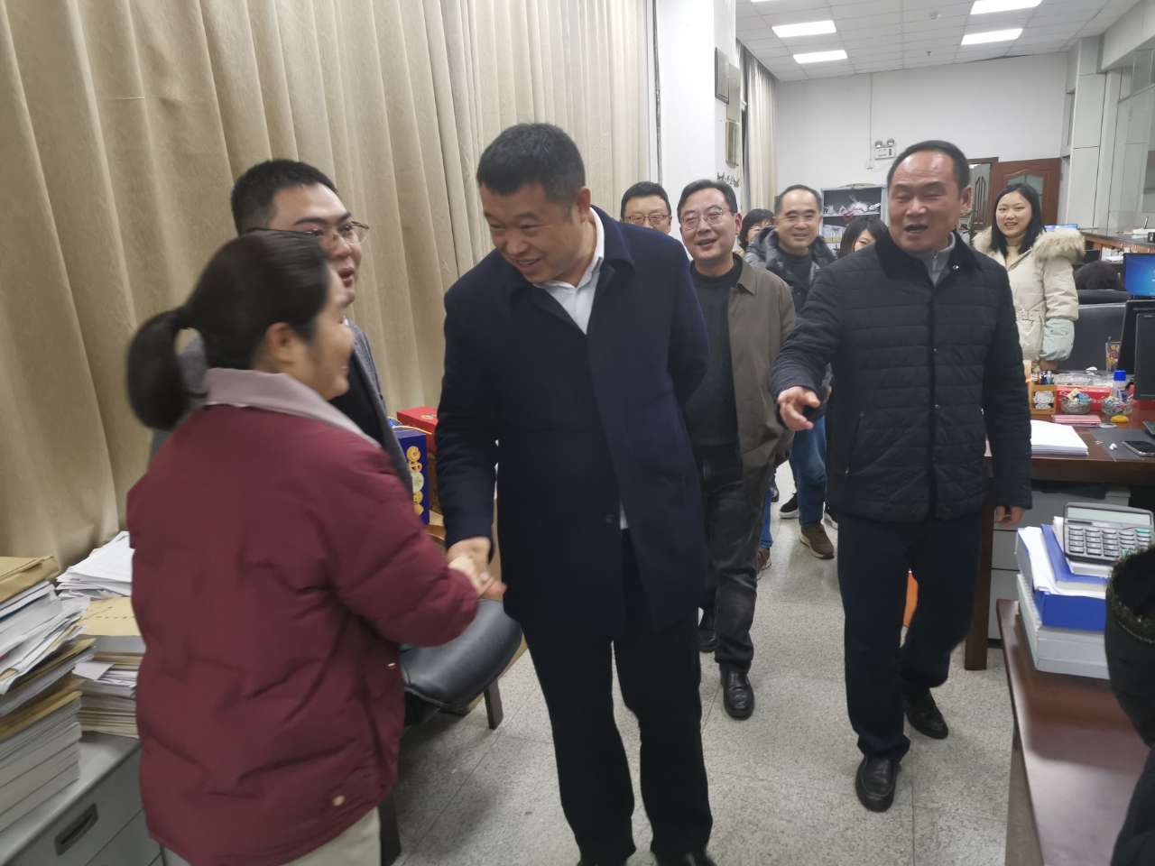 12月31日晚,市财政局局长李拥军带队分别前往市税务局、中国人民银行遂宁市中心支行慰问工作人员并送上元旦祝福。市财政局副局长羊明、国库支付管理局局长黎晓宇陪同慰问。