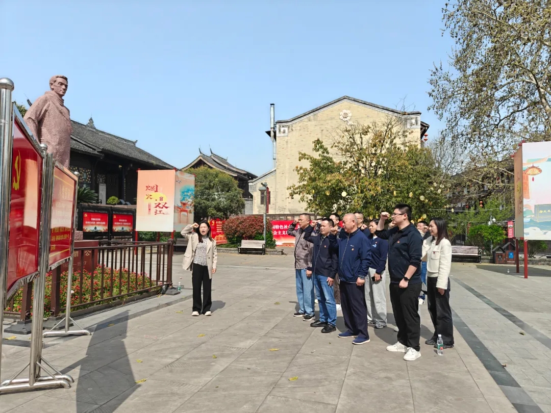 在杨闇公旧居广场前,三个支部的党员面对鲜红的党旗,重温了入党誓词。这不仅是对誓词的重温,更是对信仰的重温,也是对初心的重温。通过重温入党誓词,更加坚定了大家为党和人民事业奋斗终身的决心,提升了干事创业的精神动力。