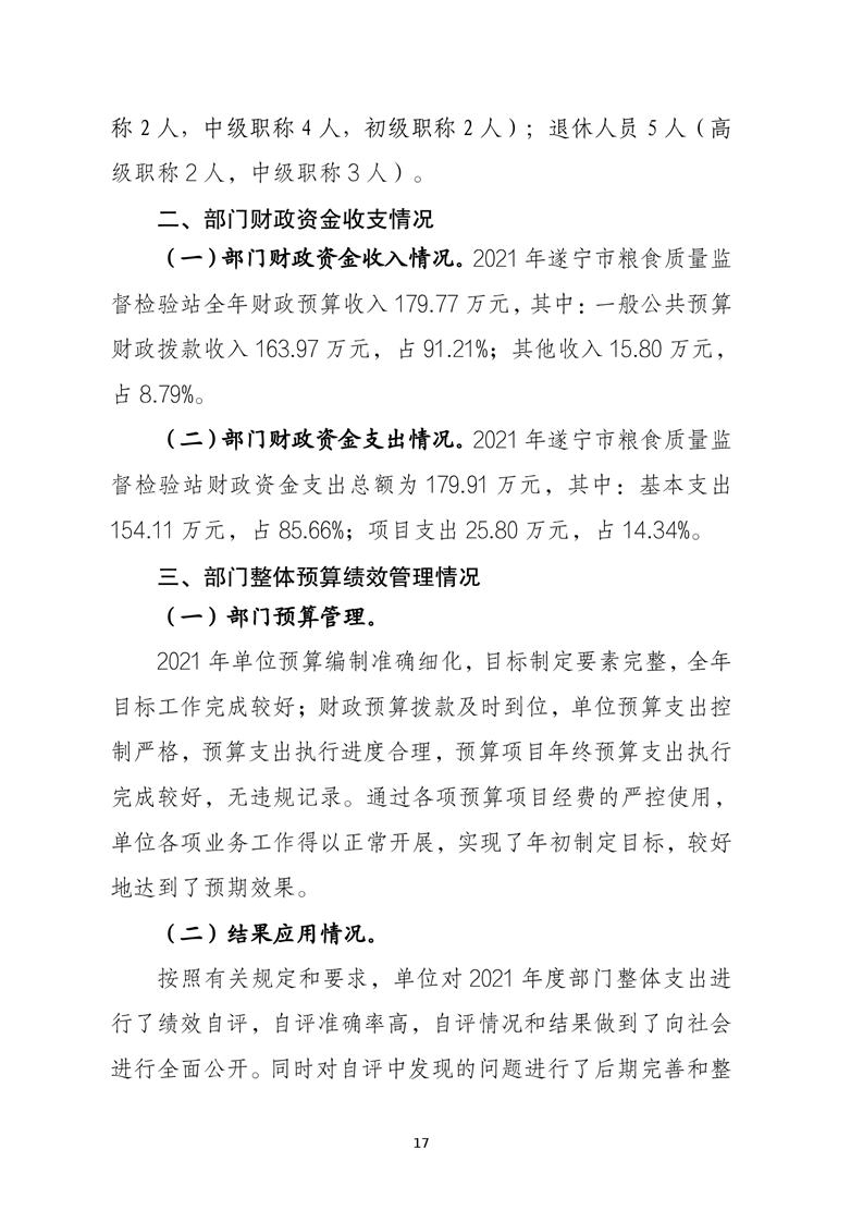 2021年度四川省遂宁市粮食质量监督检验站决算(单位公开)