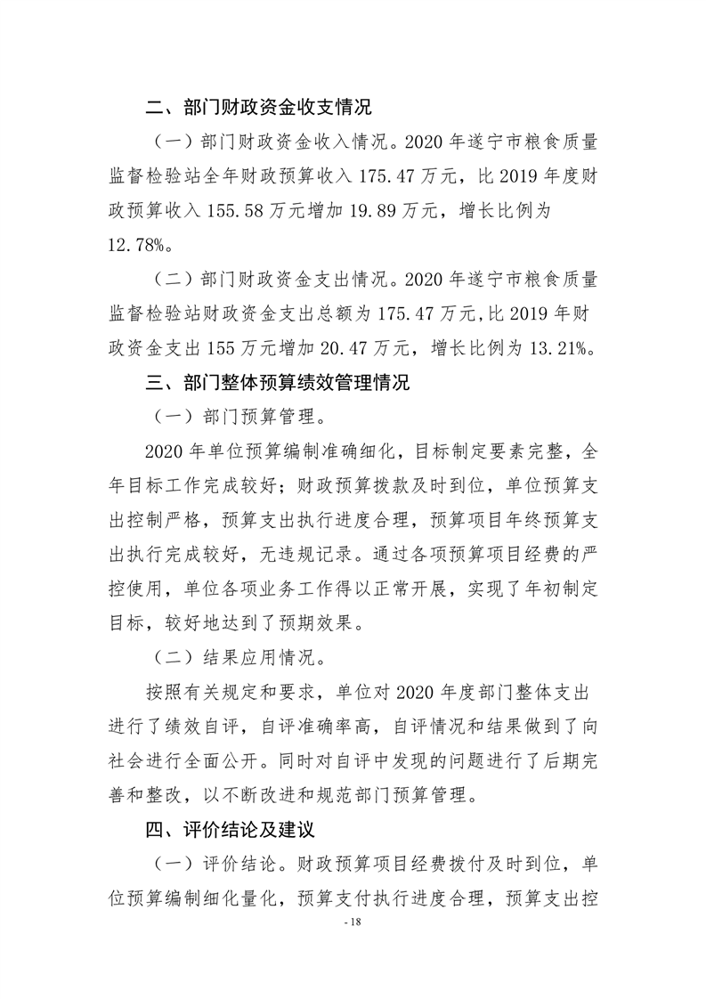 2020年度四川省遂宁市粮食质量监督检验站部门决算