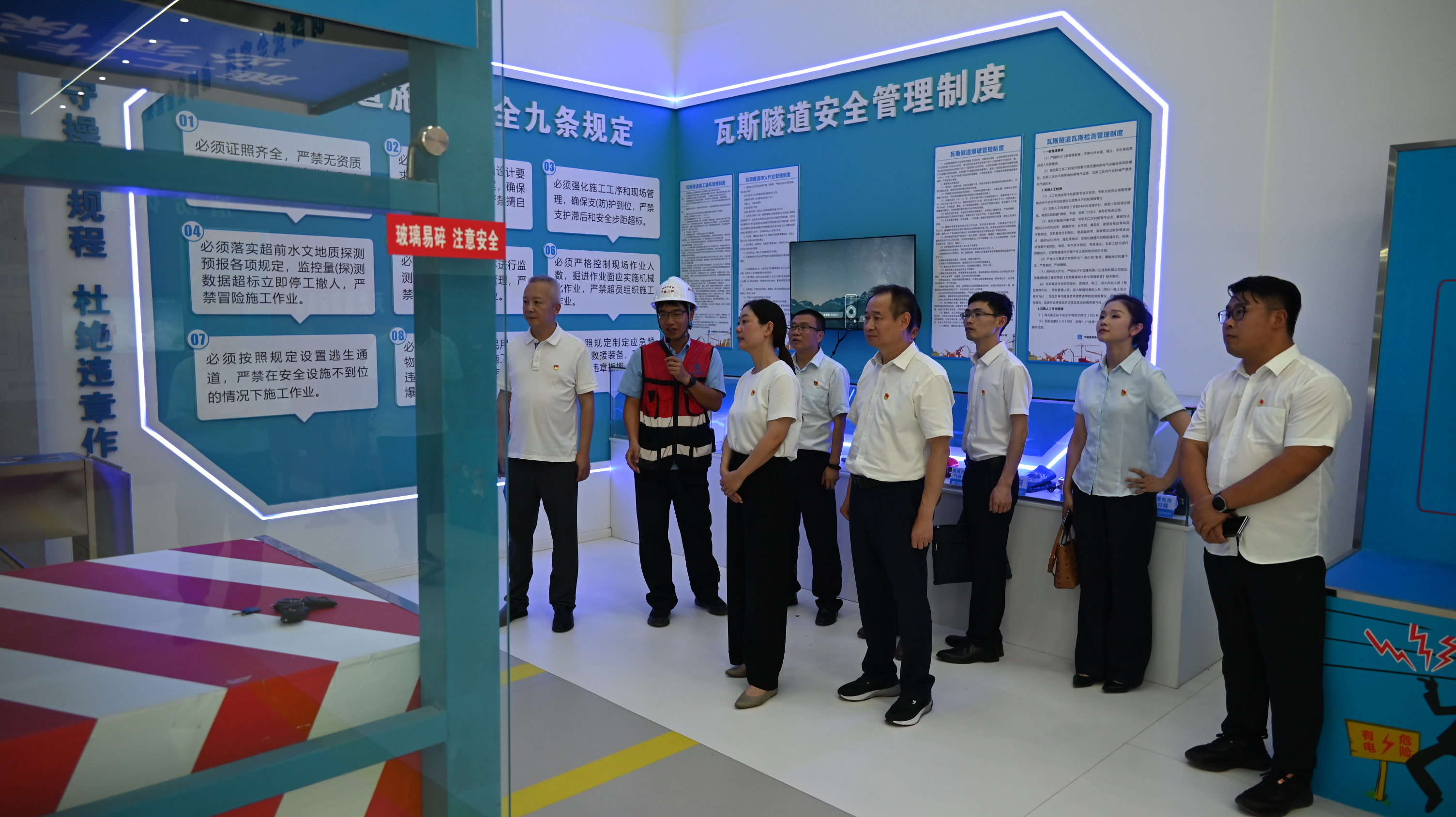现场交流推项目。党员干部深入中建八局安居制梁场项目现场,了解成达万高速铁路主梁模板制作流程、大数据监控、安全生产、产业工人技能培训等情况。