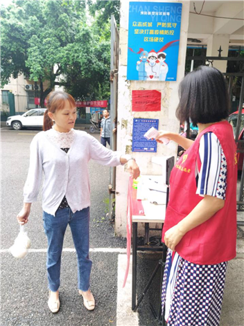 活动现场,志愿者们佩戴统一的志愿服务标志,头顶烈日,深入居民小区,清理垃圾,捡拾烟头,登记外来人员,测量体温,认真开展志愿服务工作。