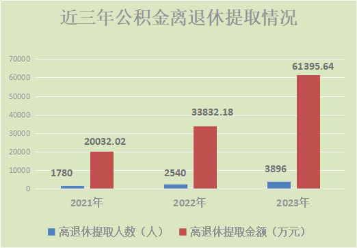 2023年,随着人口老龄化速度加快,公积金离退休提取迎来新的增长,市公积金中心推出离退休提取业务全程网办,零材料,更好服务离退休人群。全市离退休提取公积金6.14亿元,同比增长81.47%,占29.34%。