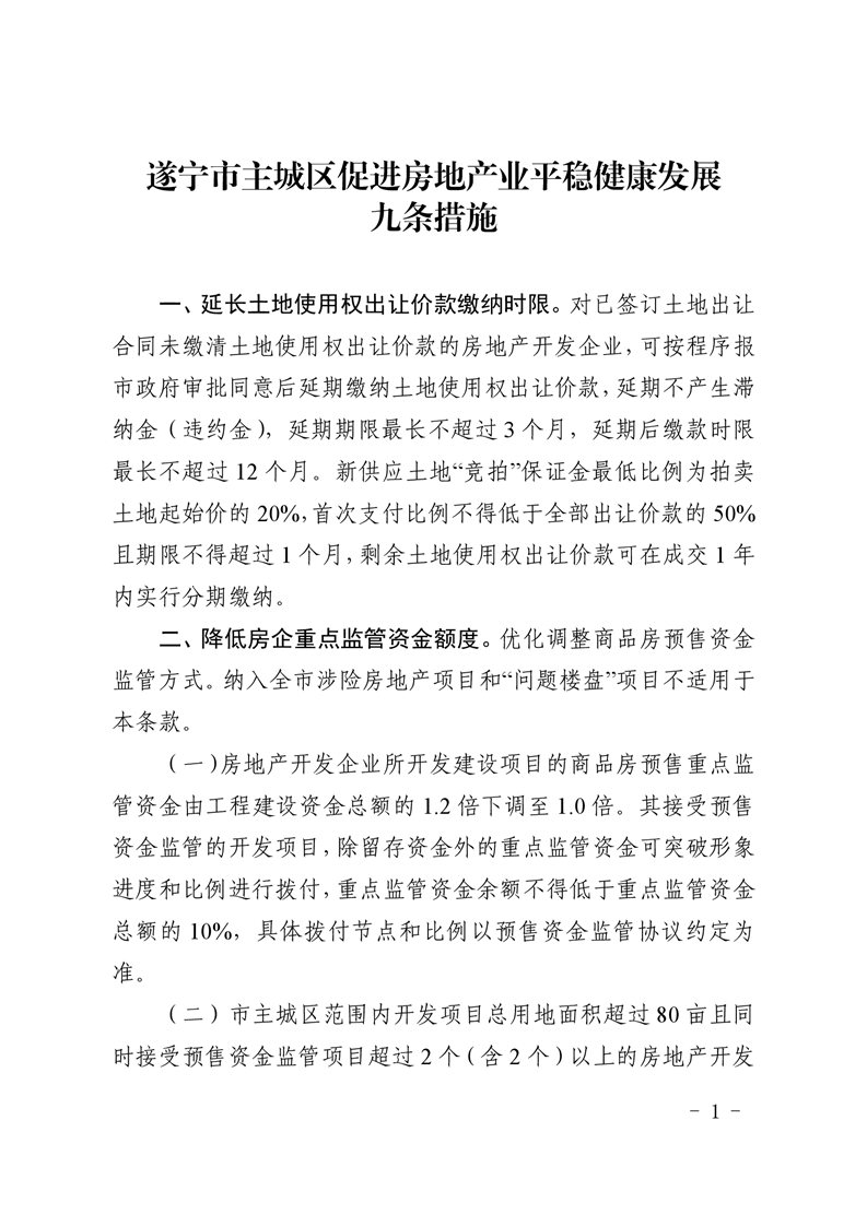 遂宁市主城区促进房地产业平稳健康发展九条措施