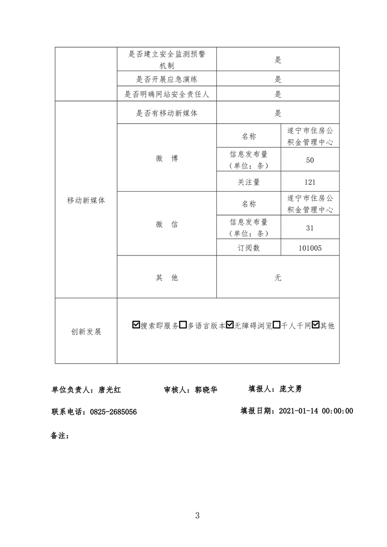 遂宁市住房公积金管理中心网站工作年度报表(2020年度)
