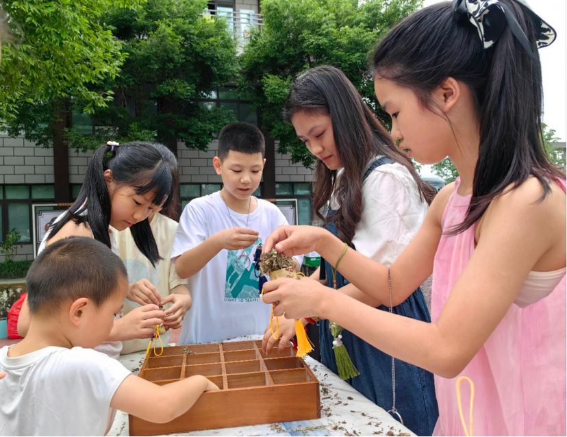 活动现场还特别设置了游戏体验项目。“古彩戏法”非遗传承人现场演绎千年魔术玄机,孩子们在学习“仙人摘豆”经典戏法过程中,感受传统艺术的精妙手法;在手工体验和木射游戏环节,孩子们不仅学习了香包的制作技艺,体验了中国古代室内球类游戏的乐趣,还在寓教于乐中锻炼了动手能力和团队协作能力。