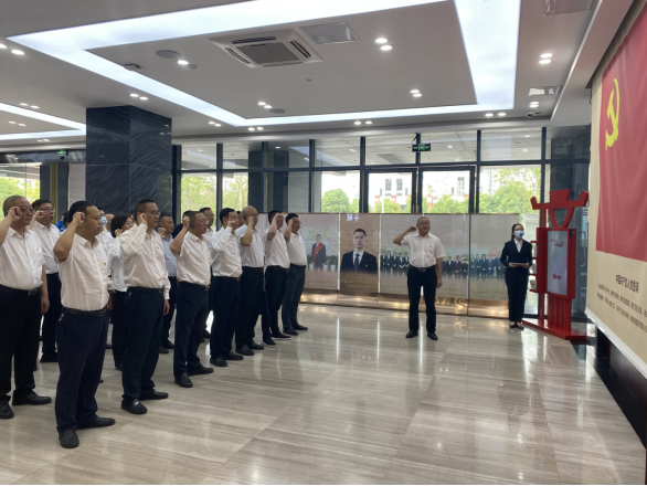 参观活动结束后,蒲显锋主持召开了心得交流座谈会。会上,数字产业集团董事长、国丰粮油公司董事长、发展产投董事长和发展水务董事长分别发言、交流心得。随后,在廉政教育展厅入党宣誓墙前,由蒲显锋同志领誓,在场党员整齐排列、高擎右拳,重温了入党誓词,铿锵有力的誓言掷地有声、久久回荡。