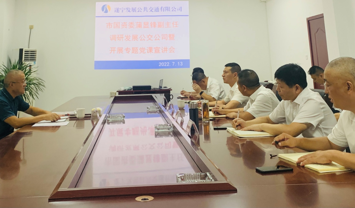 7月13日上午,市国资委党委委员、副主任蒲显锋调研发展公交公司工作暨开展专题党课宣讲,对习近平总书记来川视察重要指示精神和省第十二次党代会精神进行了全面解读,并就发展公交公司经营发展以及存在问题进行调研。发展公交公司领导班子成员及全体中层干部参加宣讲会。