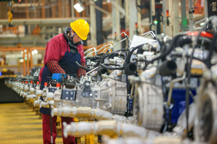 12月28日,在安居区四川江淮汽车生产车间内,工人们正全力以赴抓生产,冲刺全年目标任务。