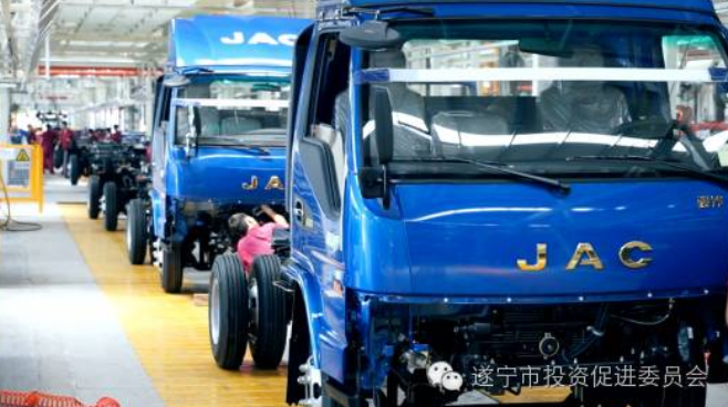 2013年12月15日安徽江淮汽车集团有限公司与遂宁市人民政府签订江淮汽车西南基地建设项目,该项目计划总投资11亿元,总占地900亩,由10万台/年/双班中轻型载货汽车项目、江淮汽车西南仓储配送中心项目和江淮汽车西南营销公司三个项目组成。一期新建5万台/年/双班中轻型载货汽车生产线,完成冲压、焊接、涂装、总装四大工艺,总产值超过40亿元。二期通过对一期的扩能升级,形成10万台/年/双班中轻型载货汽车生产规模,总产值超过80亿元。项目于2013年底实质进场,2014年3月底完成总装生产线改造,实现在安居生产江淮牌载货汽车,2014年底完成四大工艺和完整生产线建设。整个项目建设期3年,计划2016年底全部建设完成。江淮汽车在西南地区建立基地,属集团的战略布局,与安居区发展汽车产业的规划不谋而合。同时,整车项目的入驻,将集聚多家一级配套生产厂商,届时,将形成主机和配套较为完整的产业链条,预计达产后总产值将达到200亿元。