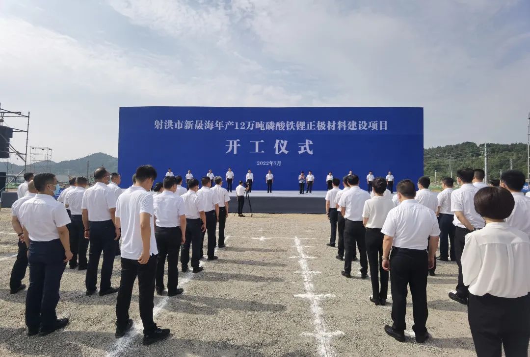7月20日上午,新晟海年产12万吨磷酸铁锂正极材料项目在射洪经开区西部国际技术合作产业园开工。市委书记李江出席开工仪式。市委副书记、市长刘会英宣布开工。市委副书记景临,盛新锂能集团股份有限公司董事长周祎出席开工仪式。