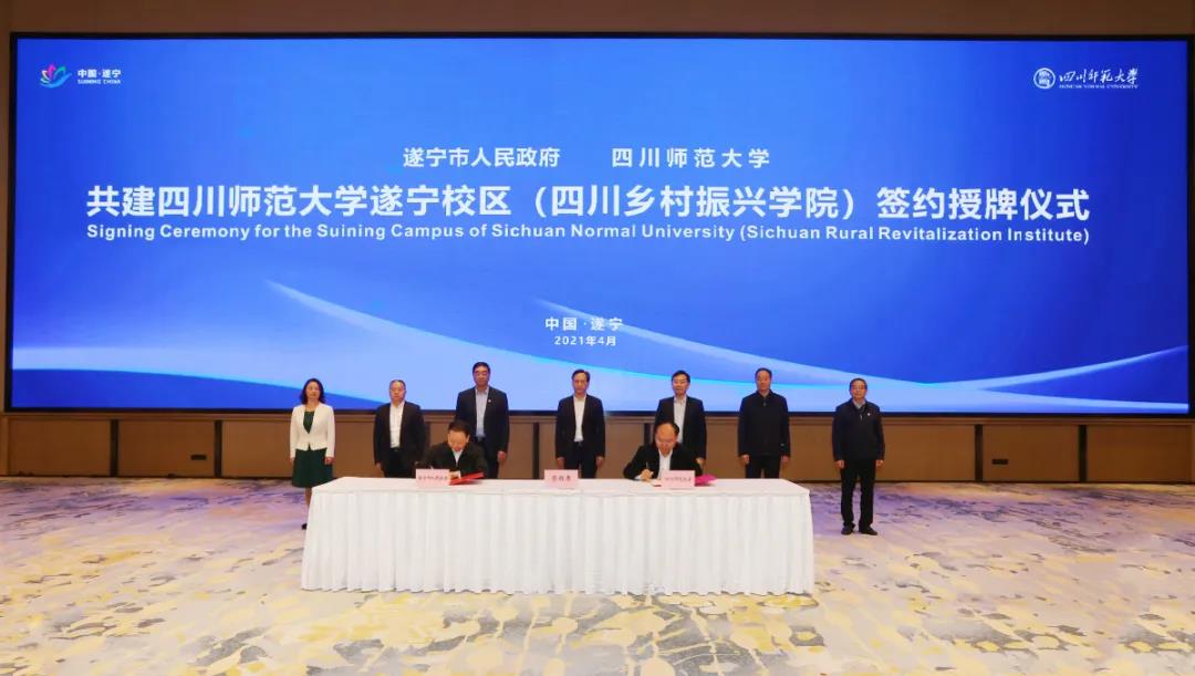 4月16日,遂宁市人民政府与四川师范大学共建四川师范大学遂宁校区(四川乡村振兴学院)签约授牌仪式举行。市委书记李江,四川师范大学党委书记李向成,四川师范大学校长汪明义出席或讲话。市委副书记、市长邓正权致辞。市人大常委会主任周霖临、市政协主席杨军,四川省委教育工委委员、省教育厅党组成员、副厅长张澜涛,四川师范大学党委副书记黄钢威出席。市委副书记景临主持授牌仪式。