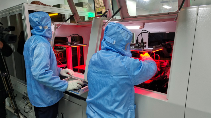 12月12日,在四川遂芯微电子股份有限公司,数名工人正在固晶生产线旁进行设备调试工作。据介绍,固晶生产线采用智能化设备,将芯片与铜板自动装配,高温烧结形成成品后,再人工进行外观与拉力测试。投产后预计每天能生产20万个成品,单条生产线月产量400万套。