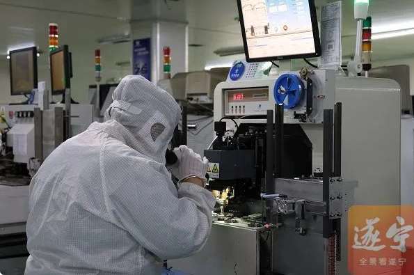 8月14日,记者在四川立泰电子有限公司生产车间看到一番热火朝天的生产景象:排列整齐的生产设备自动运转,产品经过上芯、压焊等多个生产环节封装成型……身穿防护服的工人正利用显微镜、X射线仪等对产品进行检测、分析。