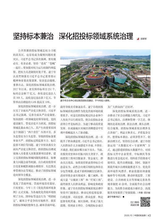 2020年8月1日出版的第15期《中国纪检监察》杂志发表了中共遂宁市委书记邵革军的署名文章《坚持标本兼治 深化招投标领域系统治理》,现进行全文转载,一起来看看吧!