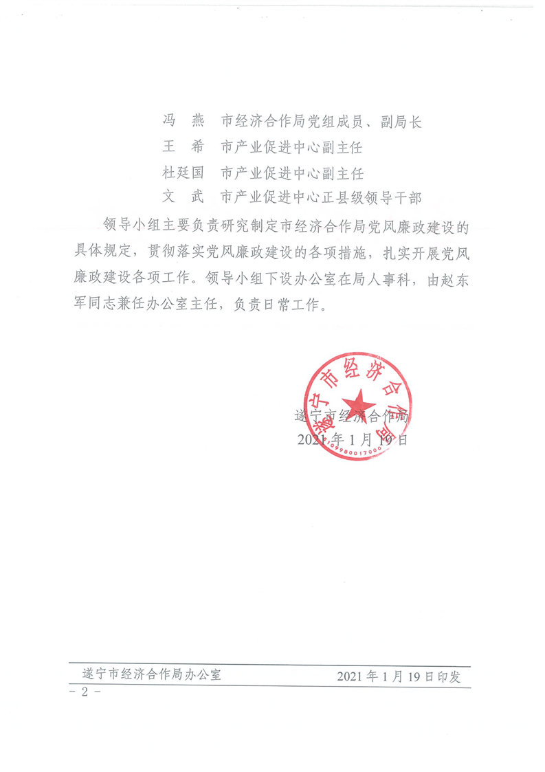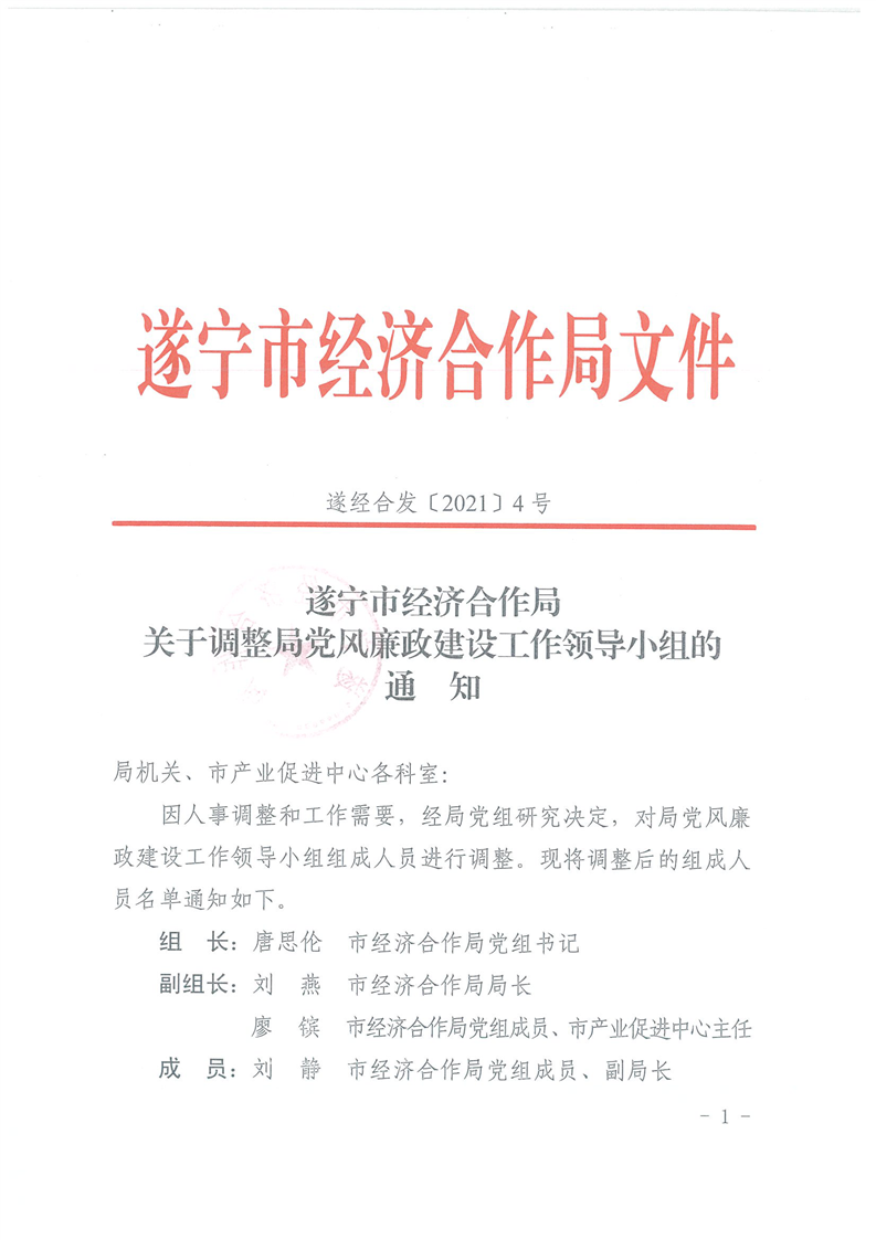 遂宁市经济合作局关于调整党风廉政建设工作领导小组的通知